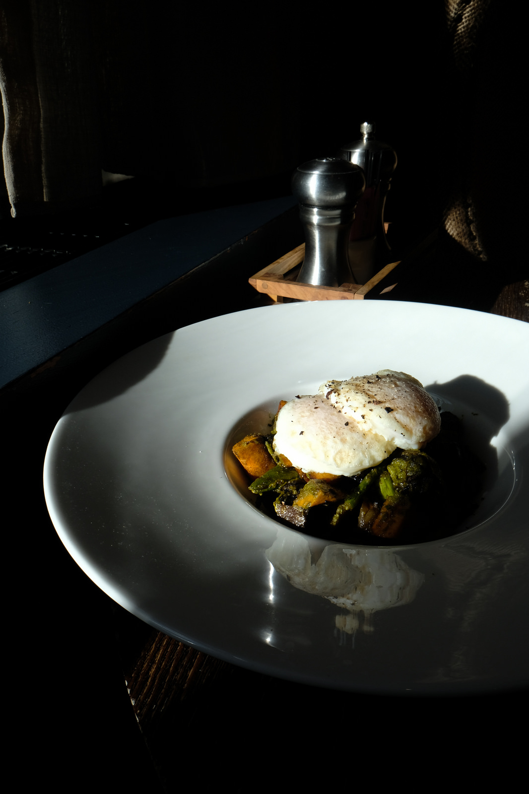 Look at this beautiful masterpiece. Roasted veggies and mushrooms with a beautiful egg on top in a yummy green chili sauce.